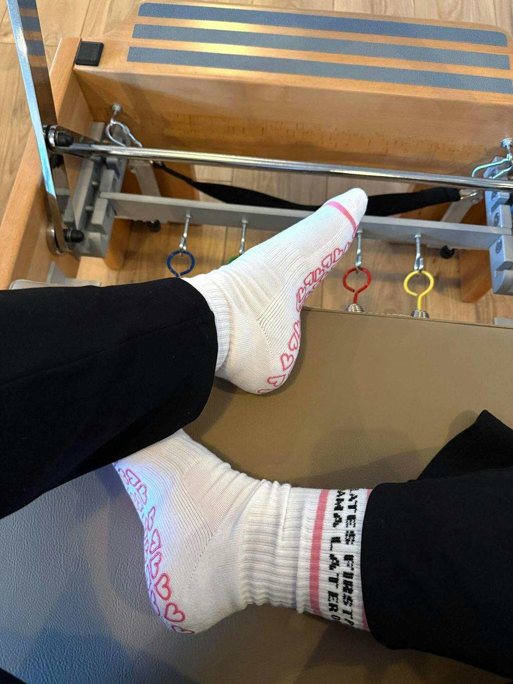 Skarpetki antypoślizgowe z Pilates First Drama Later zostały zaprojektowane tak, by wspierać każdy ruch i aktywność. Idealne do pilatesu i jogi. Zapewniają idealny balans między przyczepnością, komfortem i kontrolą. Elastyczny krój z bezpieczną silikonową, antypoślizgową podeszwą w logo BeShaped gwarantuje stabilność na reformerze i macie nawet podczas najbardziej dynamicznych sekwencji.