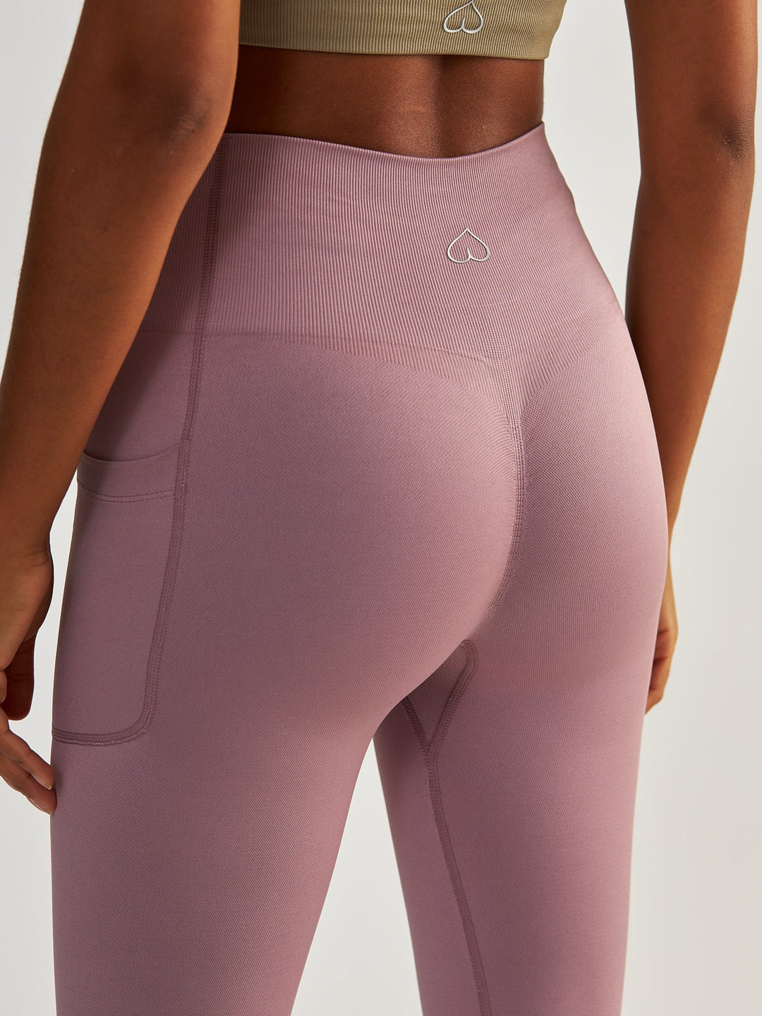 Legginsy mają wysoki pas, modelujący okolice brzucha, talii i dolnych pleców. Elastyczna wstawka na tyle delikatnie podkreśla pośladki.