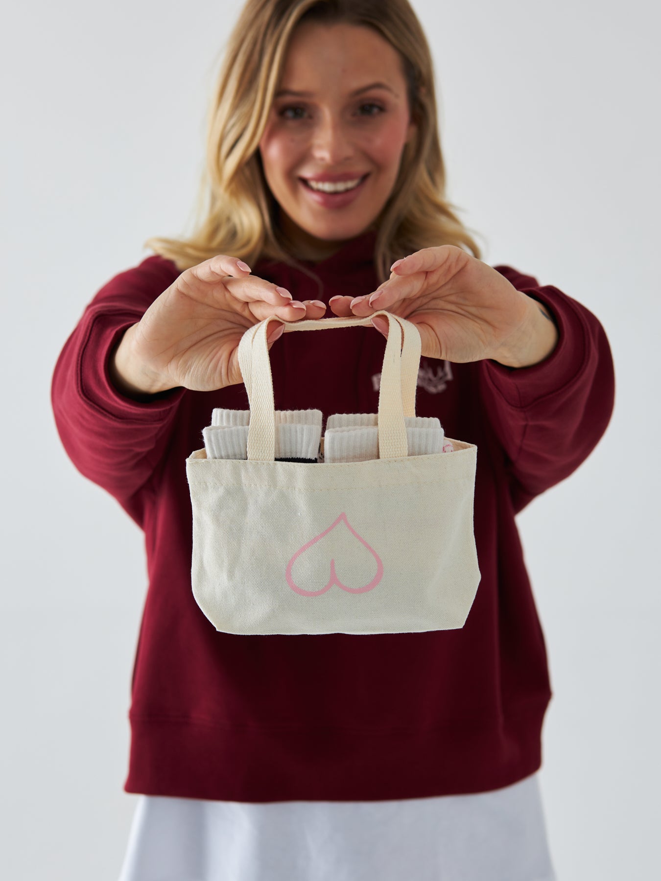 Mała rzecz, która robi duże wrażenie. Torebka prezentowa BeShaped to idealny dodatek do produktów, które chcesz podarować bliskiej osobie lub sobie samej. Wykonana z mieszaknki poliestru i bawełny, ozdobiona subtelnym, różowym logo charakterystycznym symbolem BeShaped.