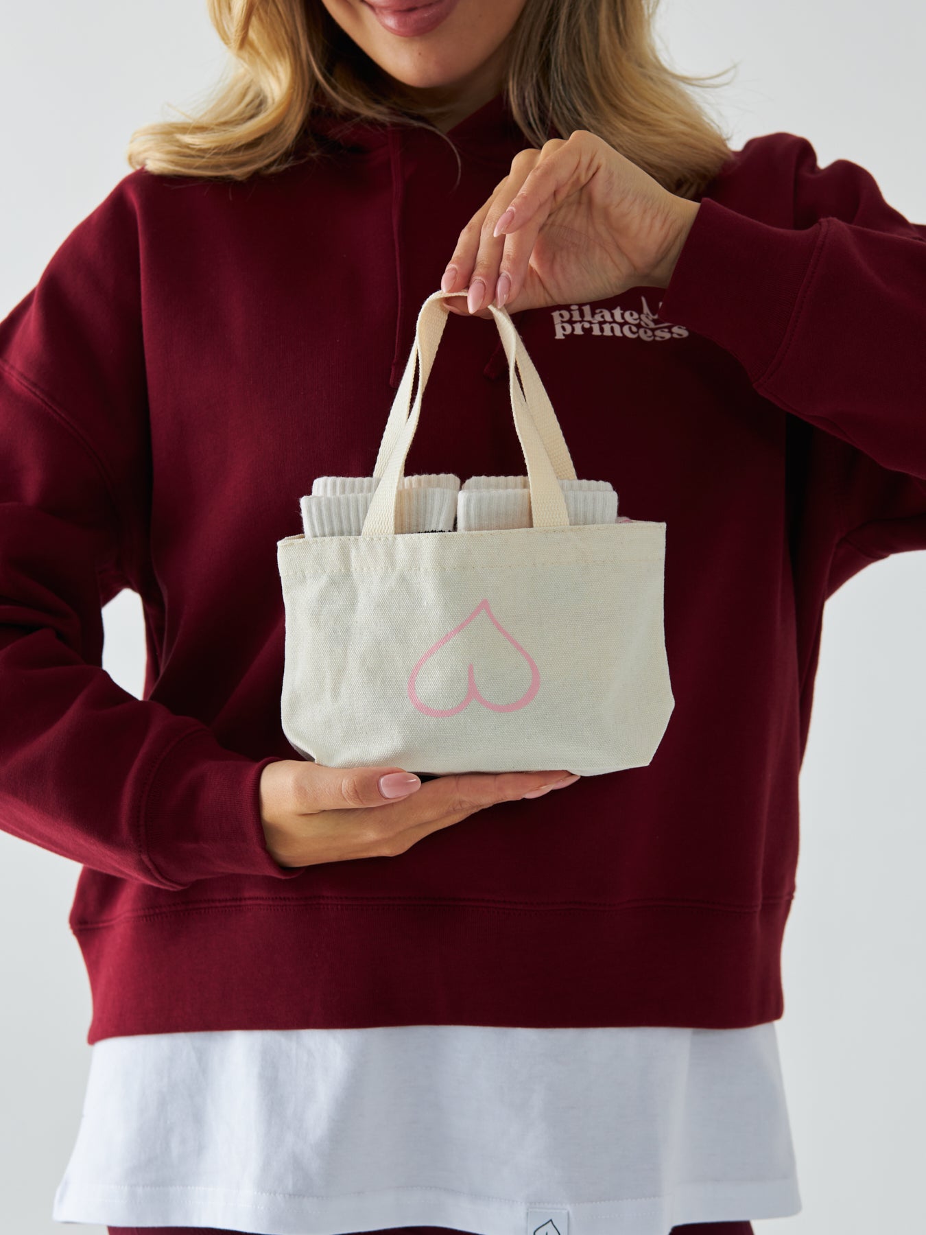 Na zdjęciu torebka w rozmiarze małym - pomieści 4 pary skarpet lub 1 zestaw sportowy (góra i dół).