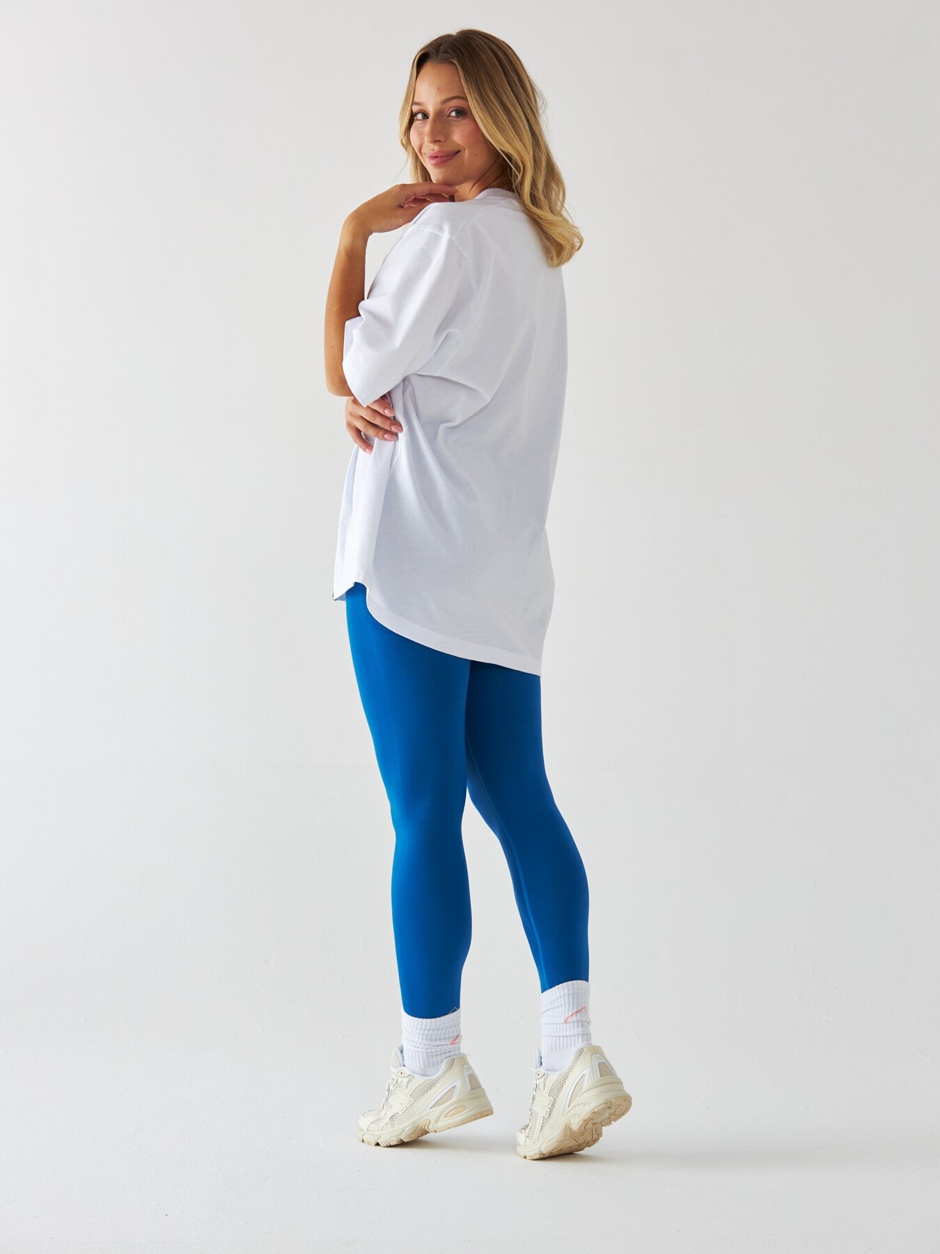Klassisk afslappet stil i hvidt Det imponerer med det trykte og gratis snit. På fronten er der et tryk med en inskription "in my pilates era"Og Beshaped og Pilates Cave Logos. Beshaped Logo Jacquard T -shirts i bunden. Limited Edition 2025.
