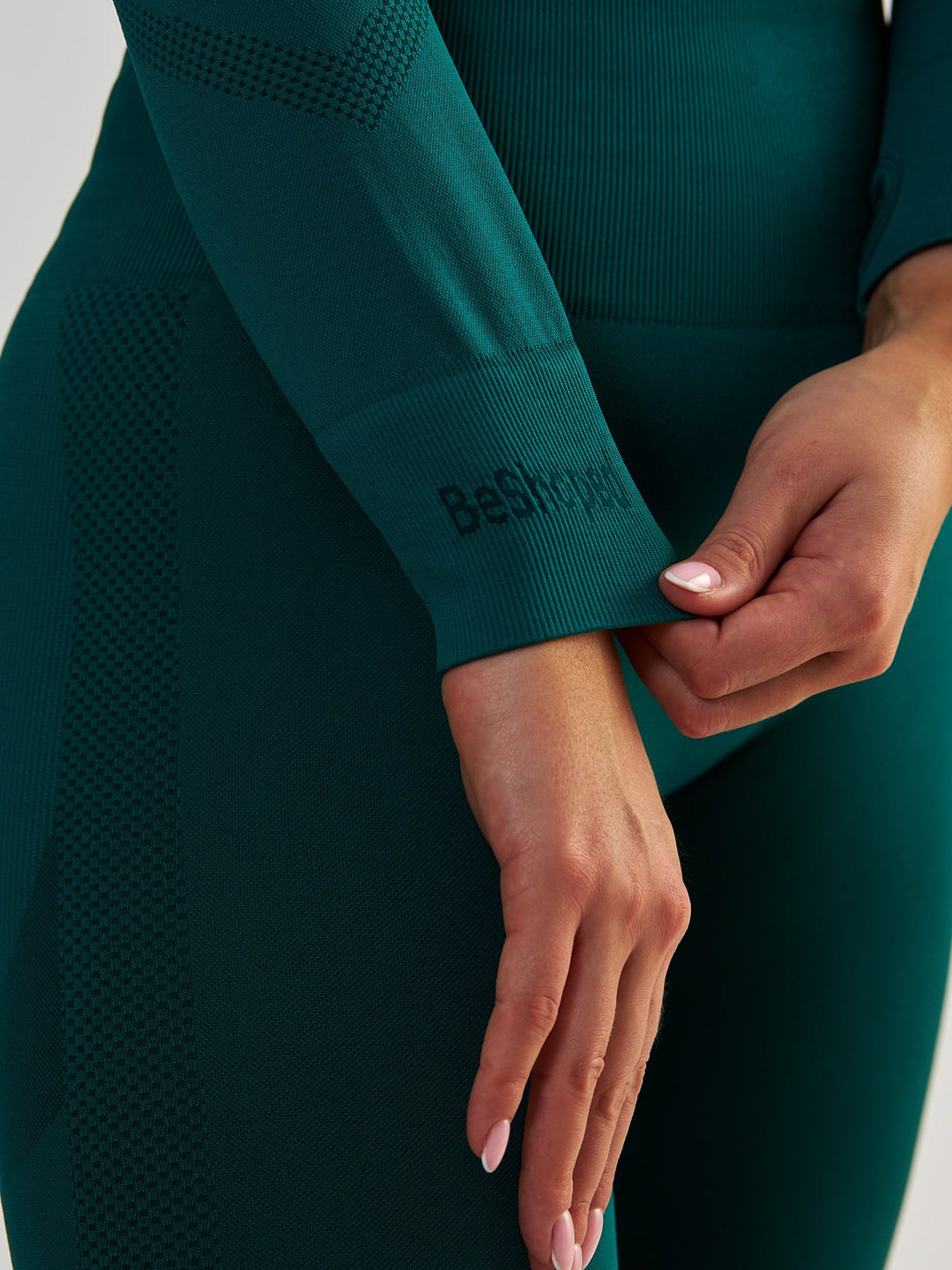 Lange ærmer er afsluttet med en tommelfingeråbning, hvilket gør, at du kan trække dem over hånden. Derudover har vi afsluttet ærmerne med en blød ribkant med et dekorativt finish. Et sådant ærme kan i bestemte situationer erstatte korte handsker og garantere komfort under træningen. Desuden gør det, at ærmerne er trukket over hånden, at ærmet bestemt ikke glider op.