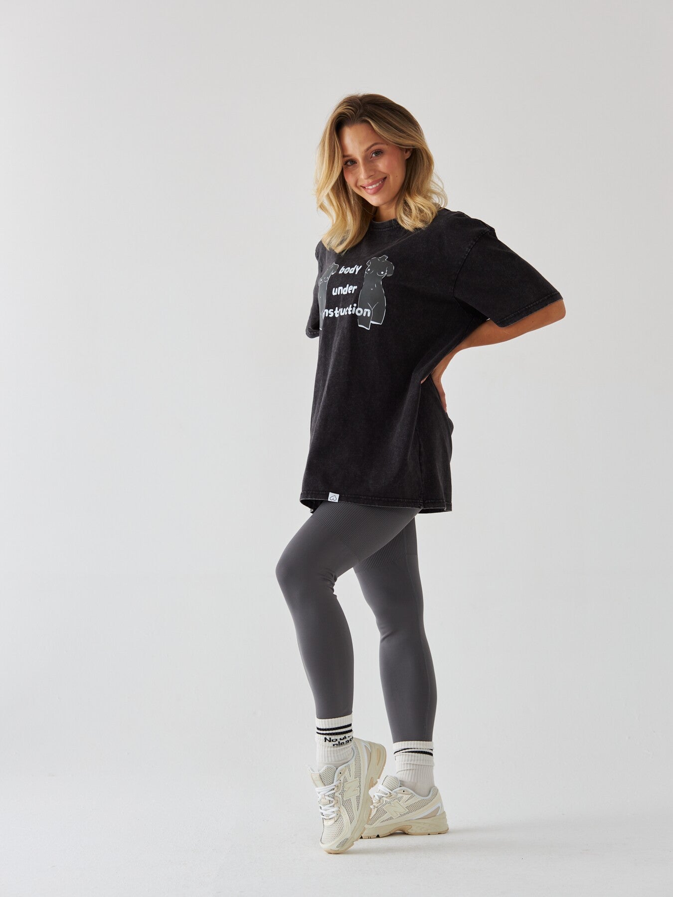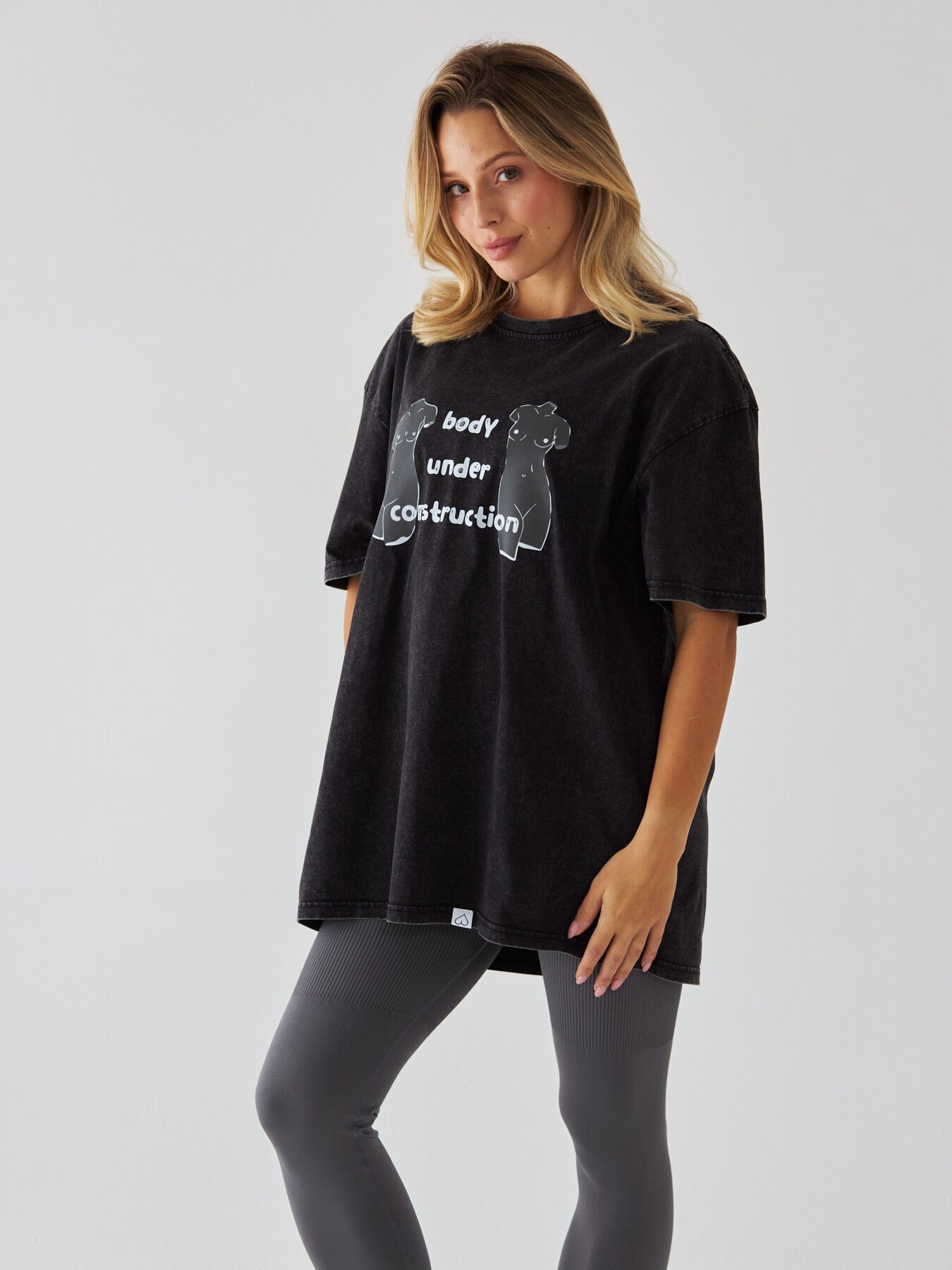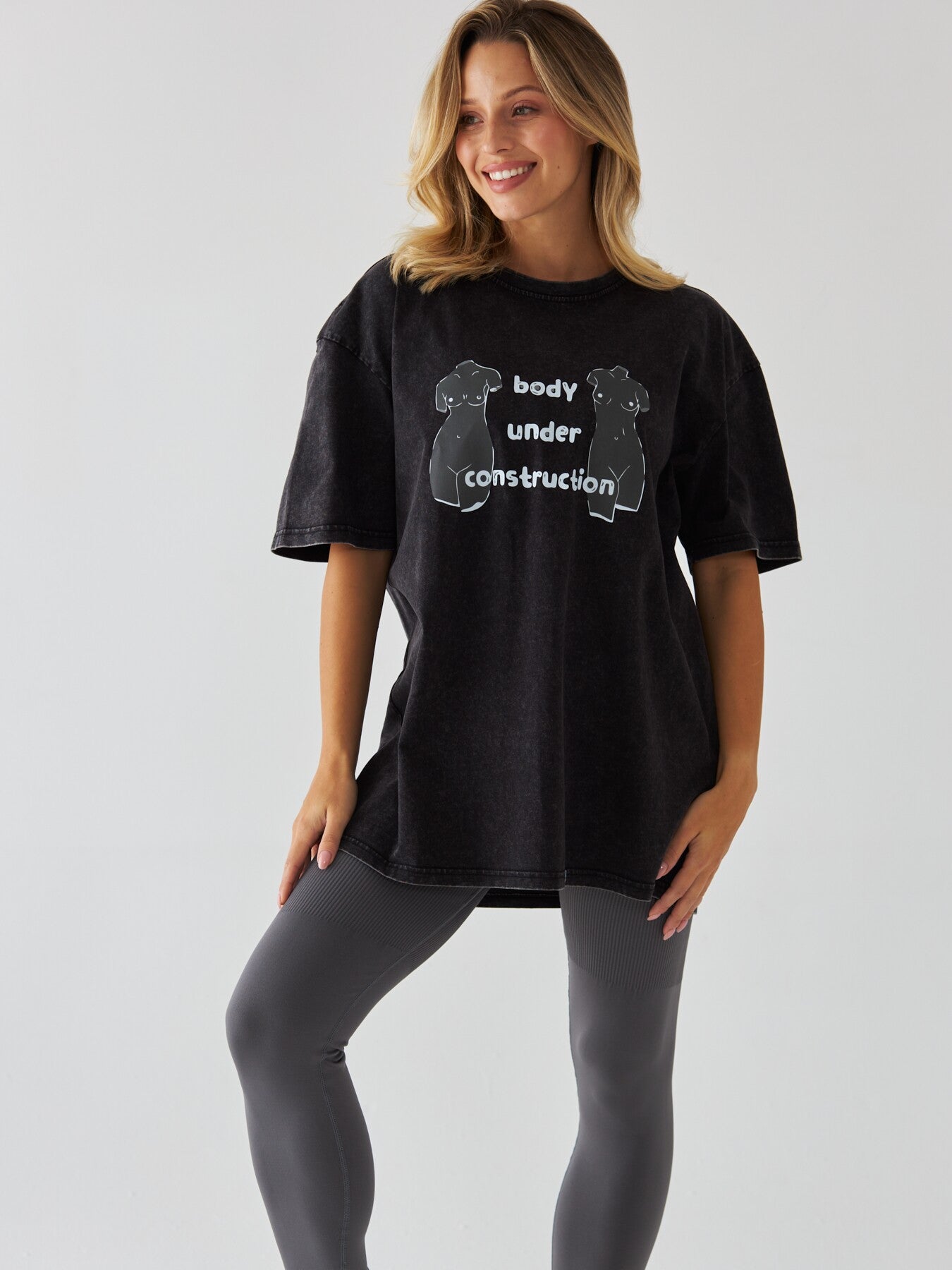 T-shirt damski „Body Under Construction” to świetny sposób na wyrażenie siebie z przymrużeniem oka! Dostępny w klasycznej bieli lub czarnym, marmurkowym stylu retro z efektownym napisem, który przypomina, że piękno tkwi w procesie!
