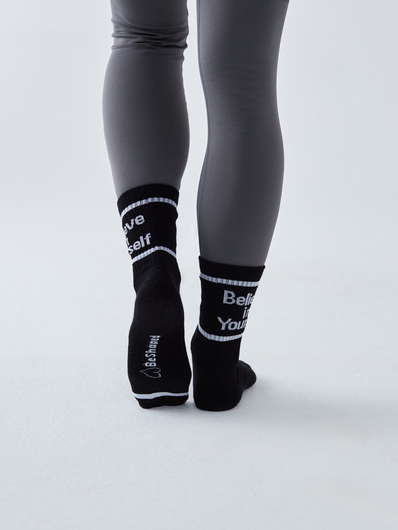 Małe przypomnienie, które potrafi zmienić cały dzień. Skarpety BeShaped Believe in Yourself mają wszystko, czego potrzebujesz – wygodę, styl i pozytywny przekaz, który po prostu działa. Napis przypomina o tym, żeby ufać sobie – na macie, w ruchu i w codziennym chaosie.