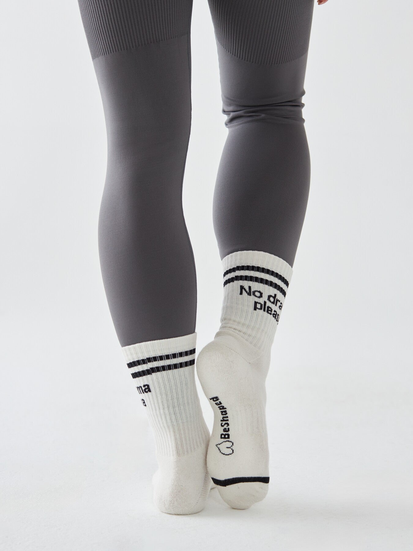 Czasem najlepszy vibe to… zero dramatu. Skarpety BeShaped No Drama Please mówią wszystko, zanim jeszcze otworzysz usta. Minimalistyczny żakardowy napis z przekazem, który rozumie każda dziewczyna, która ceni spokój, balans i własny rytm. Idealne do treningu, domowego chilloutu albo po prostu wtedy, gdy chcesz mieć dystans do całego świata.